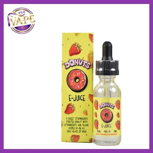 Donuts eJuice is such a stellar vape and probably the closest thing you ever vaped a creamy donut with strawberry sprinkles dipped in icy cold milk. What a great midnight snack eh? A sweet strawberry frosted donut with a strawberry jam filling dipped in an ice cold glass of milk. Rich with flavors of creme, the inhale is a soft pink frosting, with fruity flavors of strawberry sprinkle while the exhale is robust with a buttery toasted flavor of a fresh donut out of the fryer. Strawberry Donuts E-Liquid is sure to have you coming back for more for a tasty yet guilt-free treat.